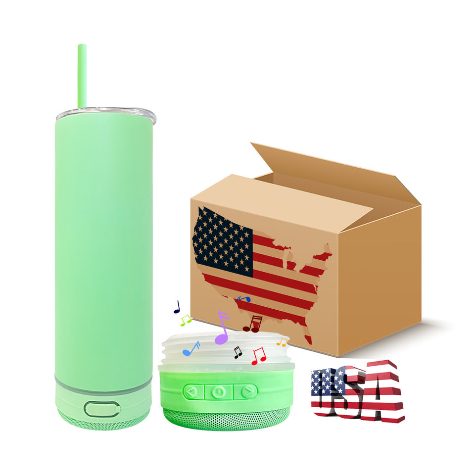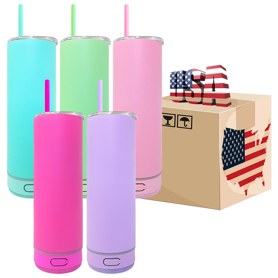 USA Warehouse Matt Colored Macaron Blank Sublimation Smart Music Player 20oz Skinny Straight Speaker Music Tumbler for DIY