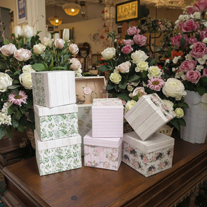 Scatola quadrata personalizzabile di alta qualità Set di 3 pezzi stampa pastorale di grano di legno scatola di fiori abbraccio barile confezione goffratura scatola regalo
