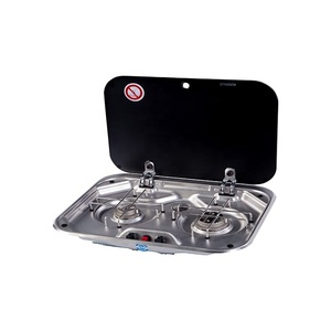 RV Accessories Portable Camper Caravan Gas Stove 2 Burners Folding Glass Lid Gas Stove Cooker With Cover