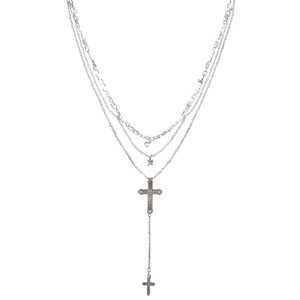 Vintage Layered Cross Necklaces For Kids Silver Plated Alloy Christian Jewelry With Initial Pendant Fashion Trendy Gift From Chi
