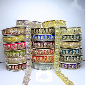 Custom Made Floral Embroidered Lace Trims Sequins 100% Cotton Eco-Friendly Vintage Design for Fashion Garments Decorative Crafts