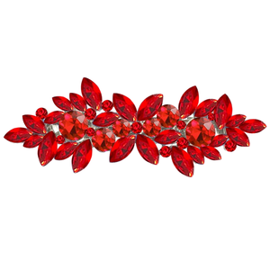 Sparkly Crystal Hair Barrettes for Women Girls Red Austrian Rhinestone Flower Hairpins Alloy Hair Clips for Party Headwear