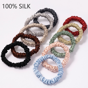 Custom Logo 1cm Skinny Size High Quality Real 100% Mulberry Silk Scrunchies Solid Pattern Ponytail Holder American Silk Hairband