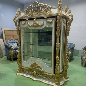 Luxury Wooden Shiny Gold Foil 6 Door Wine Display Cabinet, Royal Living Room Cabinets Antique Solid Wood Oak Traditional