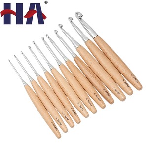 Knitting Tools 11-pieces Different Sizes Needlework Solid Wood Handle Metal Hook Crochet Hook