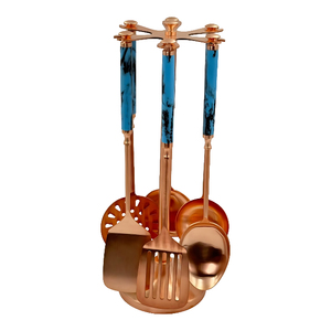 Copper Finish Stainless Steel Kitchen Utensil Set 6 Piece High Quality Durable Dishwasher Oven Safe Lightweight Everyday Use