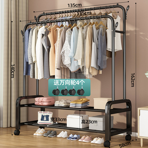 Classic Standing Heavy Duty Stainless Steel Movable Rust Resistant Three-Layer Clothes Rack for Bathroom Kitchen Living Room