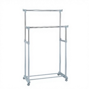 Adjustable Stainless Steel Double Tier Rolling Simple Design Bathroom Clothes Drying Rack