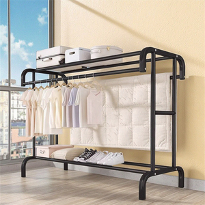 New Design Floor-Standing Metal Cloth Rack with PP Bottom Indoor/Outdoor Rust-proof Double Rod Coat Stand Clothes Drying Rack