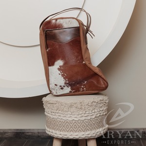 Wholesale Hair on Cowhide Leather Shoe Bags for Men & Women Personalized Genuine Leather Hiking Boot Bag Custom Shoe Travel Bag