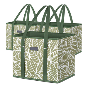 Custom Eco Washable Storage Bulk Buying Basket Water Resistant Shopping Folding Reusablenon Woven Grocery Bag Reinforced Bottom