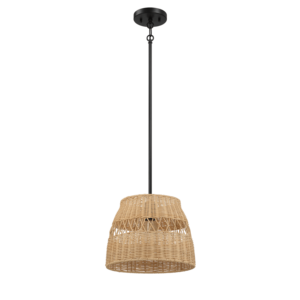 DB Essence Single Pendant Light with Rattan Shade Black Metal Finish for Boho Japanese Farmhouse Style Indoor Lampshade Frames