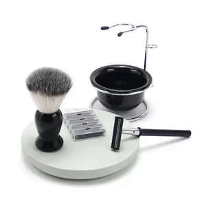 High Quality Nylon Shaving Brush Set with Mini Black Acrylic Stand and Shaving Bowl for Beard for Home Shaving Care