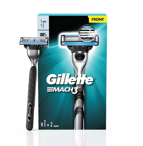 Gillettee Mach 3 Shaving Razor + 2 Cartridge Ergonomic Steel Handle Solid Grip