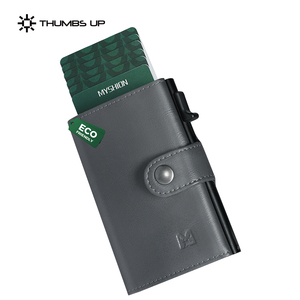 THUMBS-UP dompet ramping pria kancing kulit abu-abu lipat tiga saku koin risleting pemblokir RFID