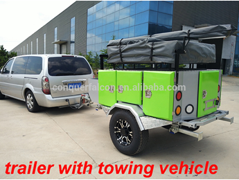 Model CF-CD-02 is an upgraded off road folding camper trailer , which has more storage room and drawers, and more electrical parts,such as solar power control panel.