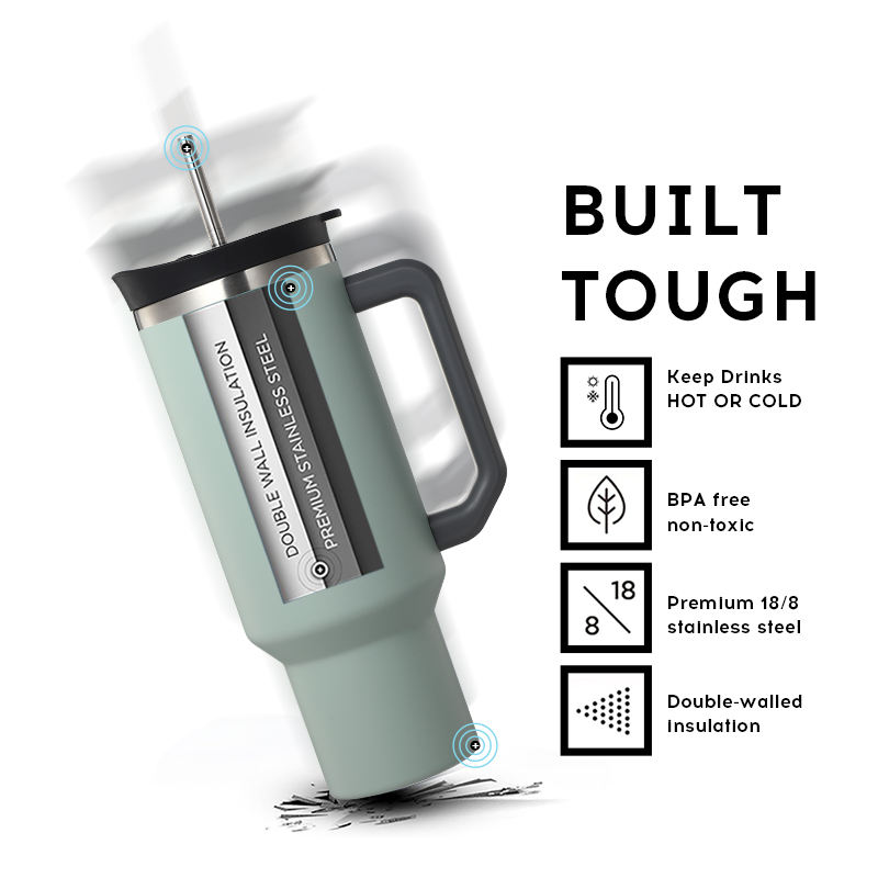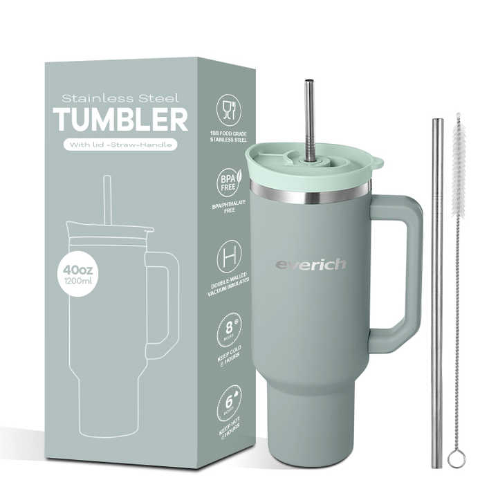 EverichODM漏れ防止ステンレス鋼40オンスタンブラーアドベンチャーハンドルタンブラートラベルマグハンドルとストロー付き屋外タンブラー