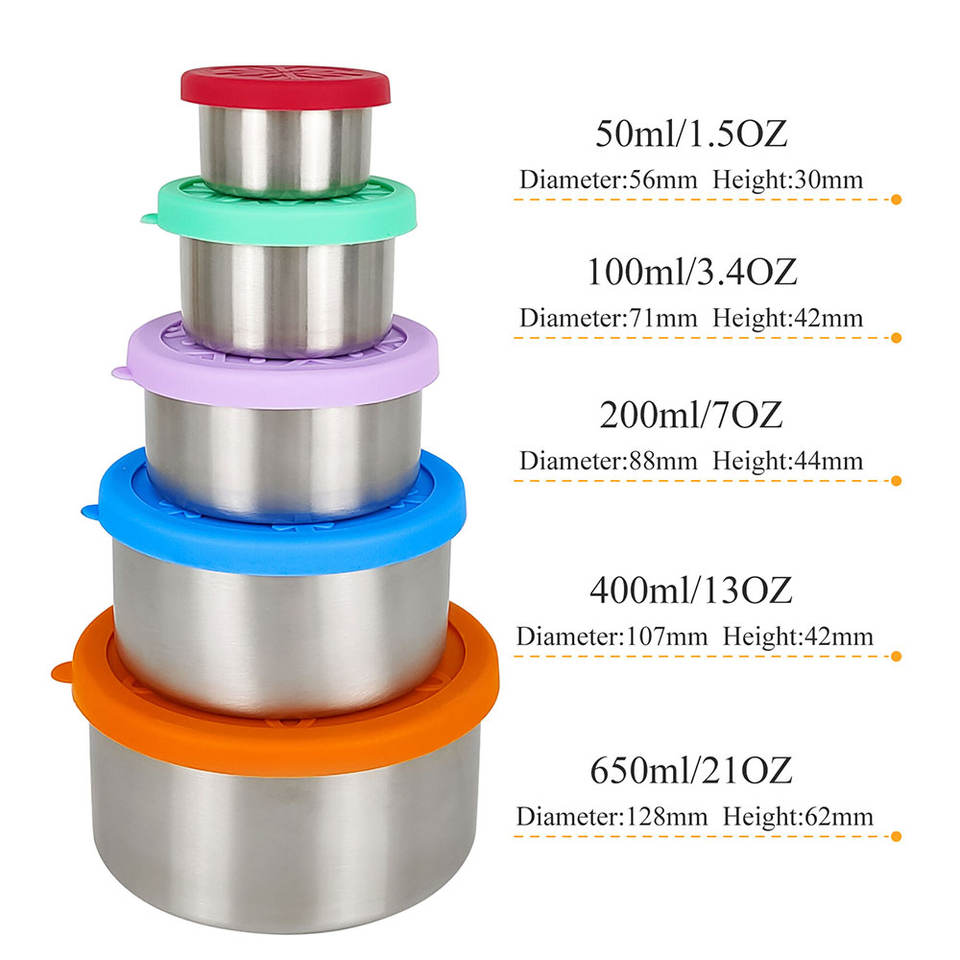 SUS304 Nesting Metal Food Container Round snacks Lunchbox Stainless Steel Food Container for school