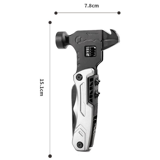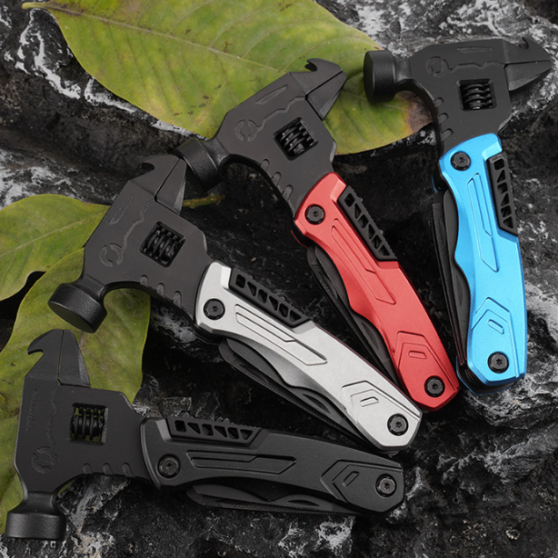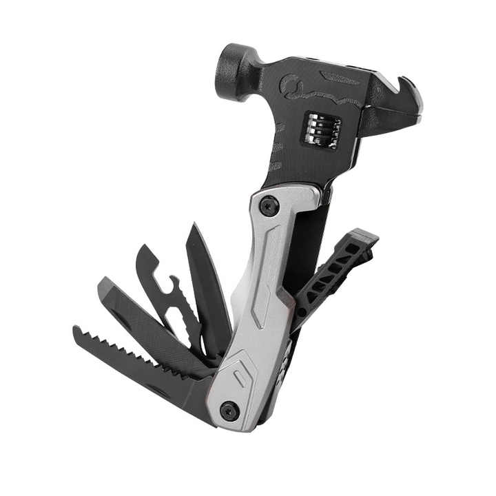 12-in-1 Adjustable Multitool Wrench Portable Outdoor Camping Hammer with Vehicle-Mounted Folding Knife Pliers Tools