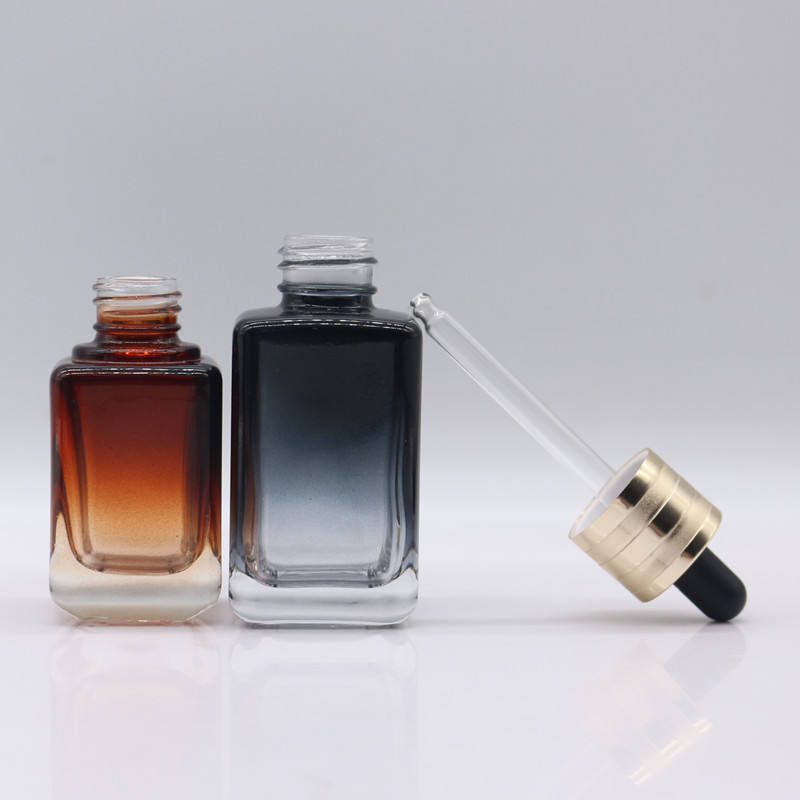 30ml 50ml frasco conta-gotas de óleo essencial de soro quadrado preto âmbar