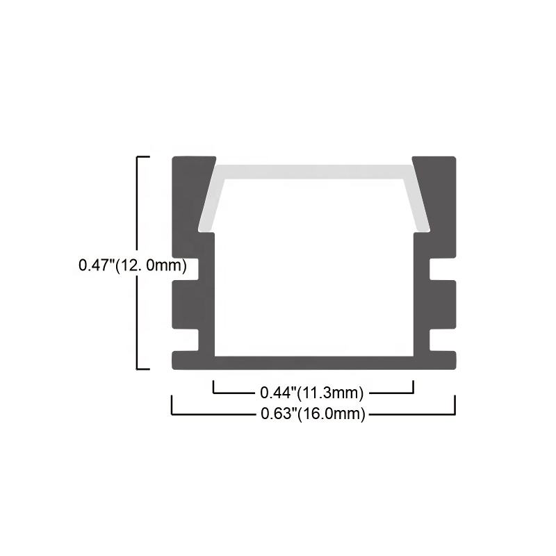 Diffuseur d'installation en surface de dimensions 16*12 mm, extrusion d'aluminium, profilé LED en aluminium//