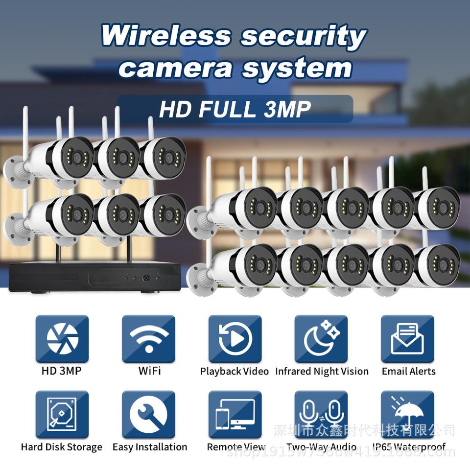 Sistema de cámara de seguridad inalámbrica 16CH 3MP hogar al aire libre dos vías de audio a todo color visión nocturna CCTV 16 PCS cámaras NVR Kit