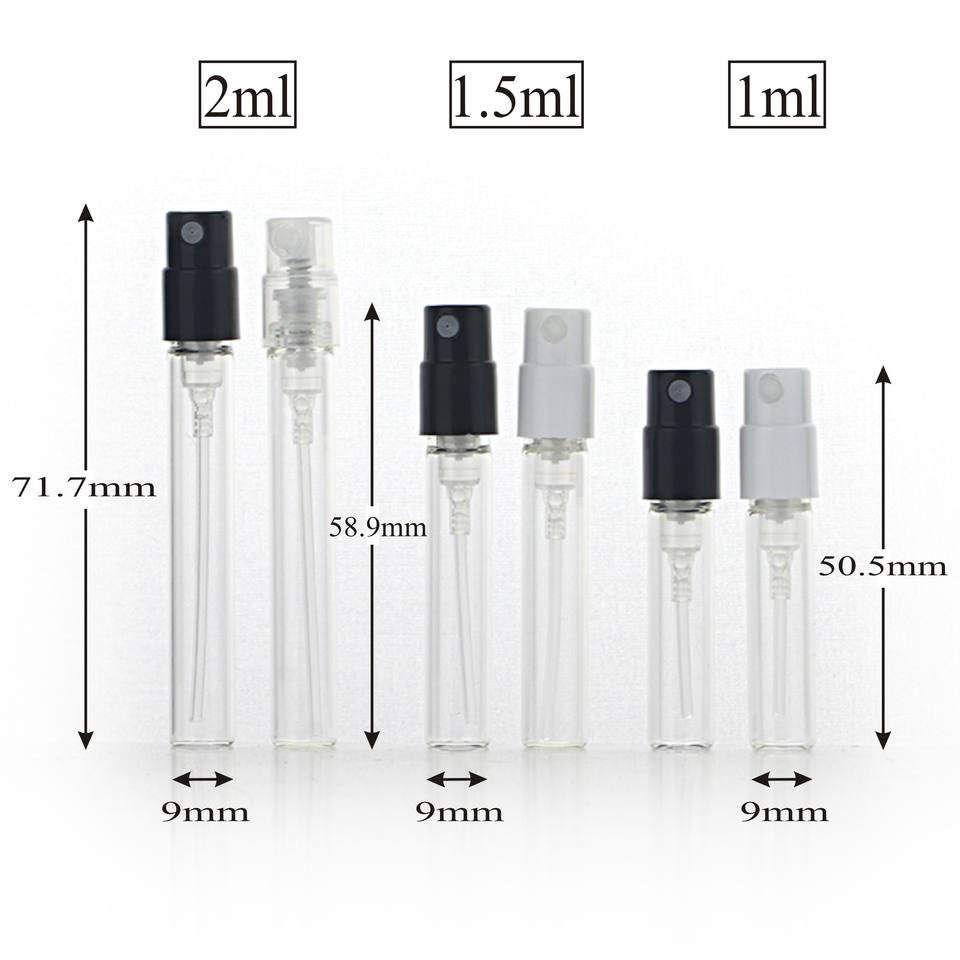 1ml 1.5ml 2ml Mini Fine Mist Spray Glass Perfume Bottle Small Size Travel Use Disposable Empty Clear Glass Perfume Sample Vials