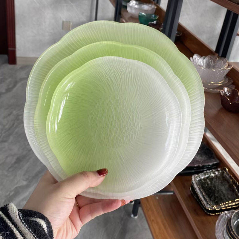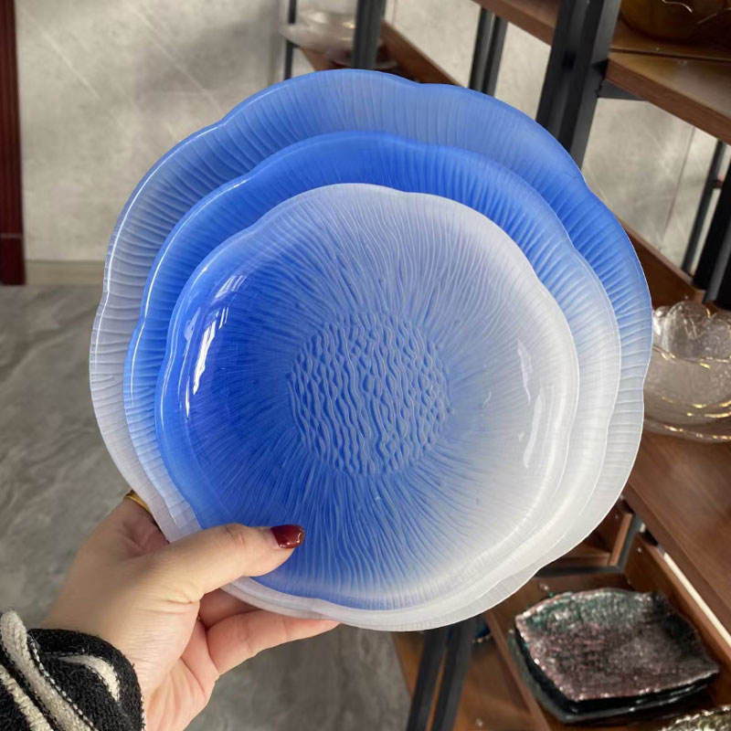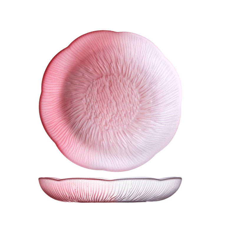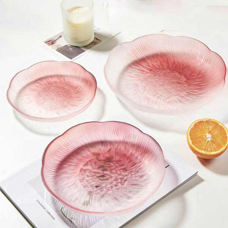 Plato de vidrio texturizado Floral para servir fruta, cena, ensalada, bandeja rosa, Color degradado, estilo creativo, 2023