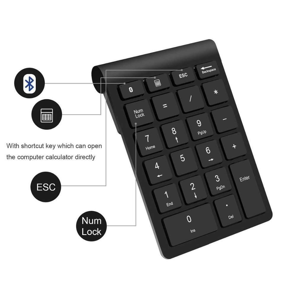Teclado multifunción con Bluetooth, 22 teclas, inalámbrico, numérico, para ordenador portátil/de escritorio/Uds.