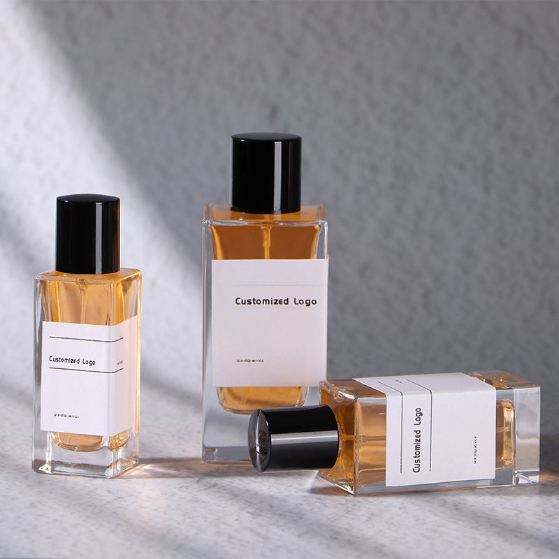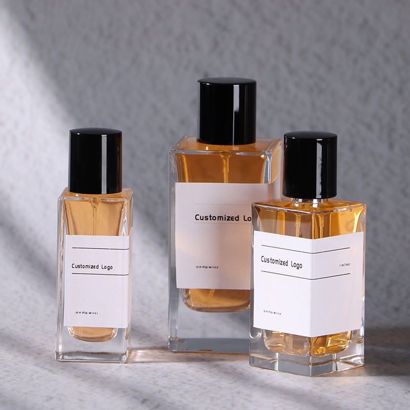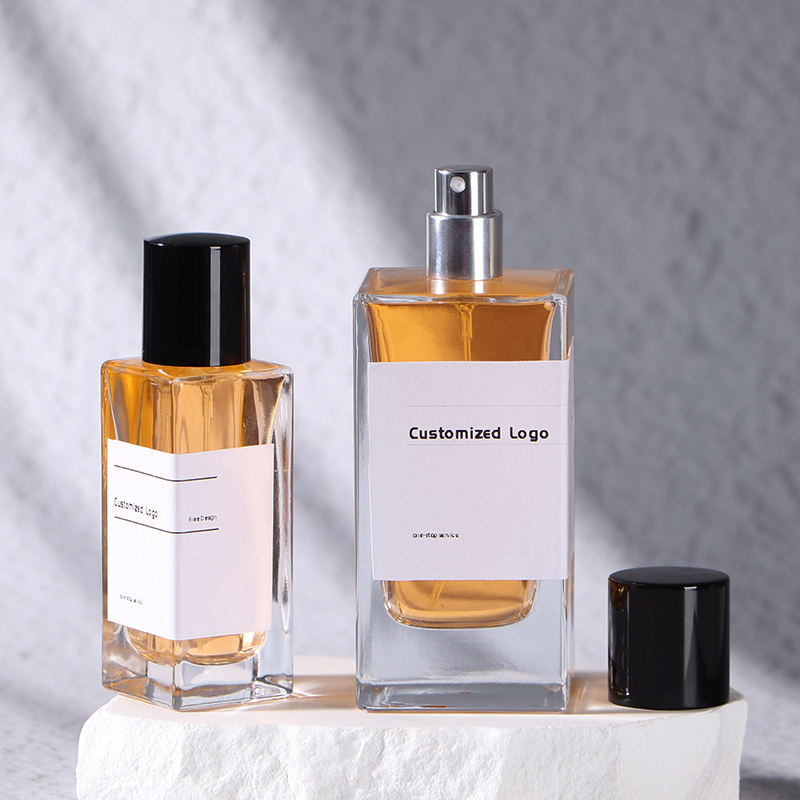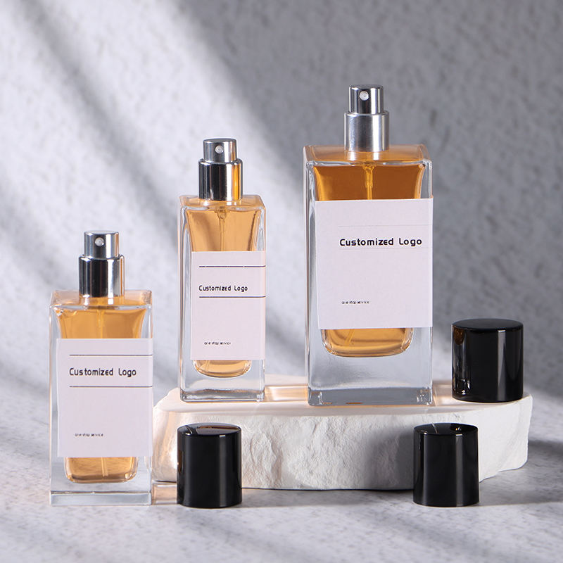30ml 50ml 100ml özel boş dikdörtgen Vintage taşınabilir sprey cam kare parfüm şişesi plastik kapaklı