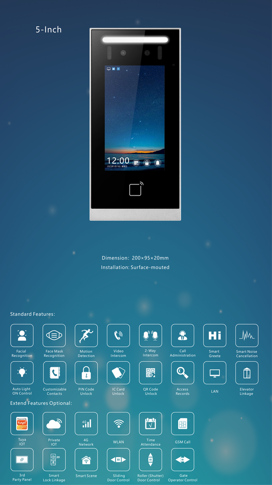 5 "macchina di interfono visivo impermeabile all'aperto IC Card strisciata supporta entrambi i lati unità interna che sblocca la funzione Touch Screen