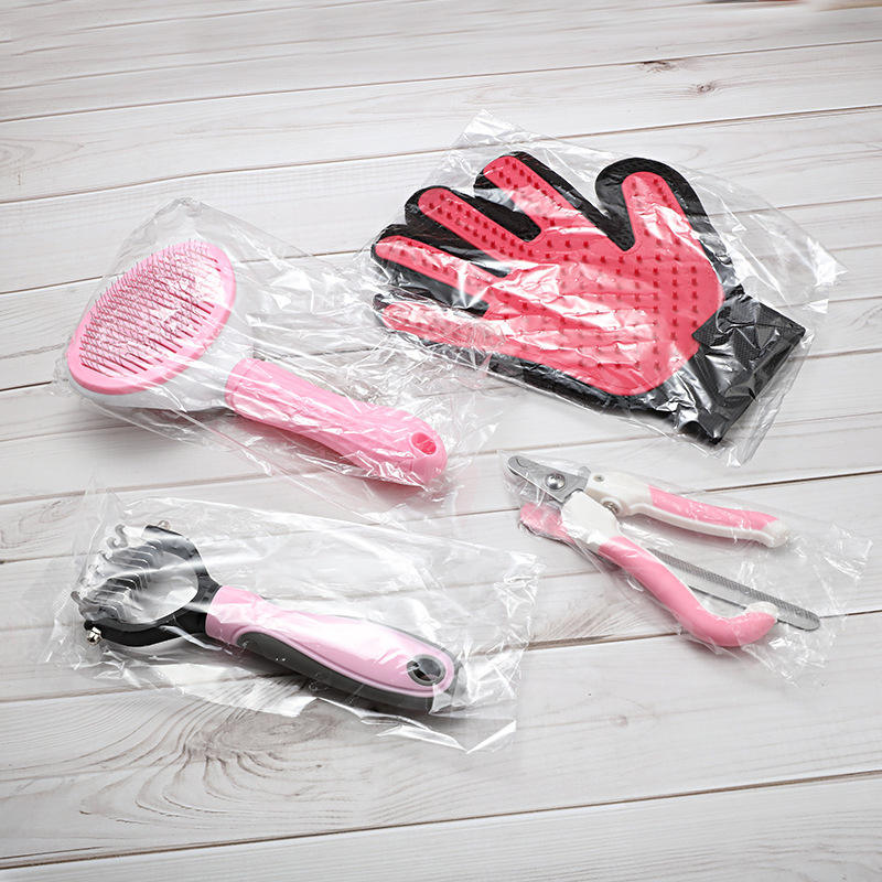 5 in 1 köpek tımar kiti banyo fırçası ile evcil hayvan tırnak Clipper dökülme Pet tımar kiti
