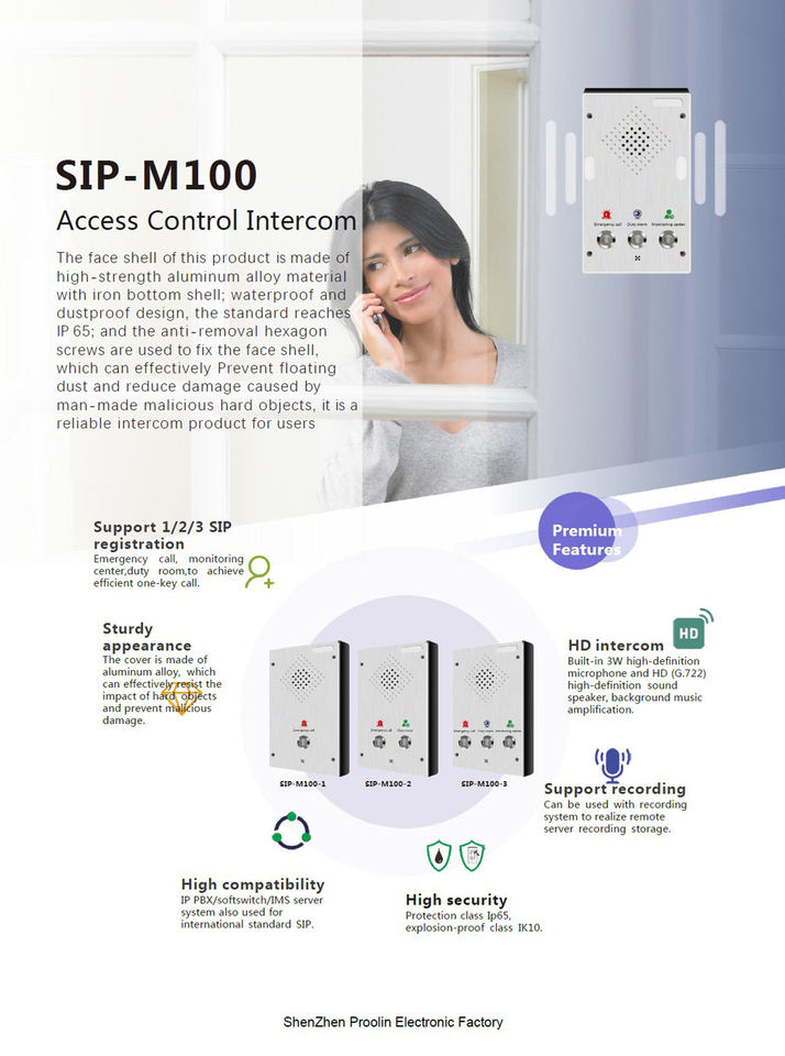 Kiểm Soát Truy Cập IP Intercom ,Proolin Nhà Máy SIP Âm Thanh Intercom Với 1key/2 Phím/3 Phím Tùy Chọn