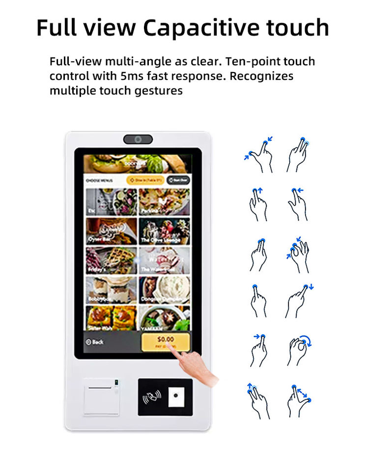 Android/Linux Touchscreen Self-Ordering POS Terminal Barcode Reader Facial Recognition High-Definition Monitor Self-Service