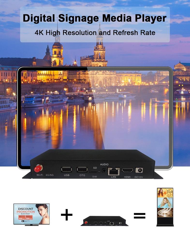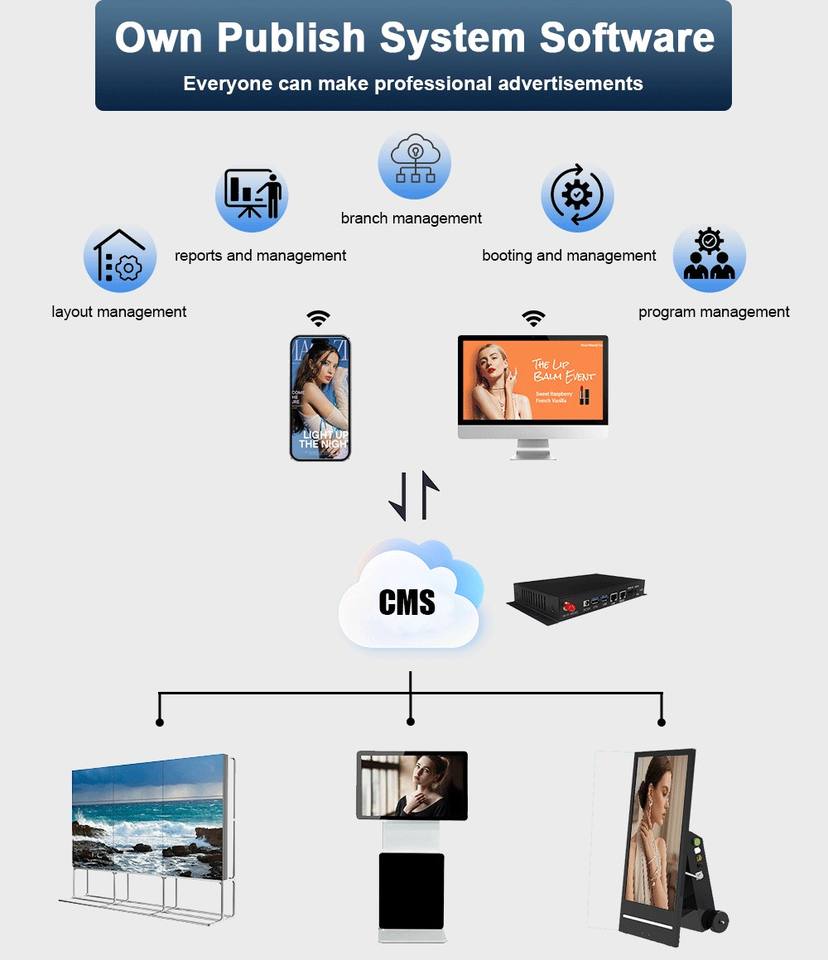صندوق إدارة سحابية وتحكم بتطبيق USB بنظام أندرويد مع برنامج CMS لمشغل الإعلانات واللافتات الرقمية 4k