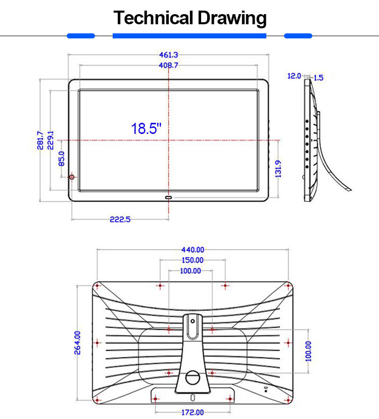 الروبوت واي فاي شبكة الفيديو مشغل Ad 18.5 بوصة عن بعد عرض إعلاني الشاشة الرقمية شاشة لافتات