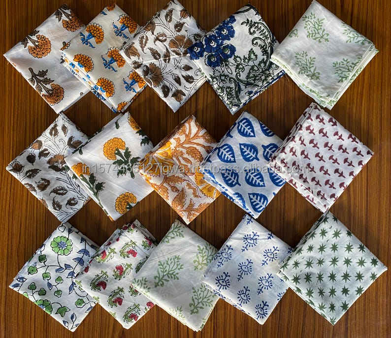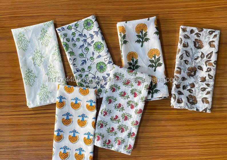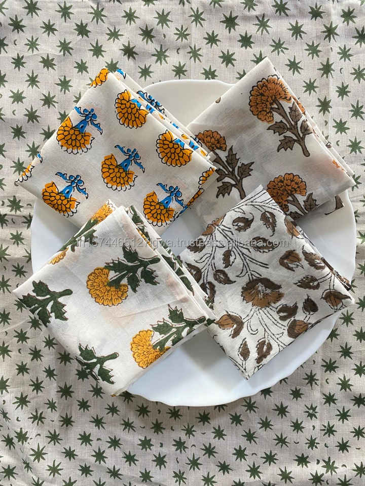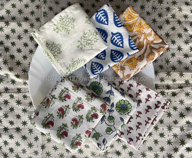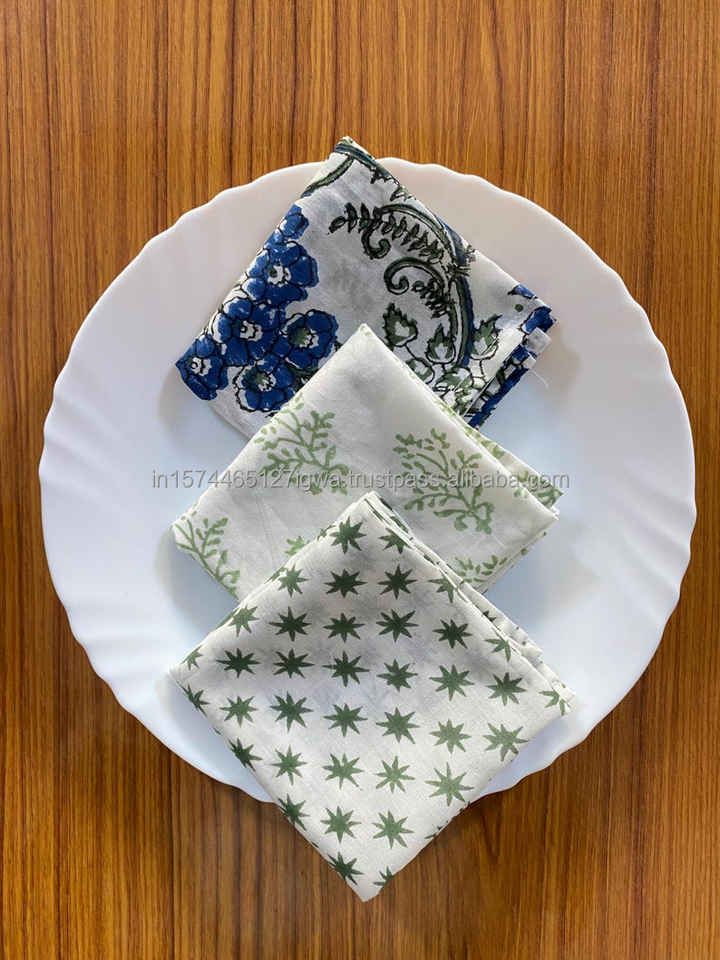 Diverse Herbruikbare Servet Set 6 Bedrukte Doek Servetten Handblok Katoen Vierkante Vorm Voor Thuis Voor Bruiloftsfeesten Eettafels