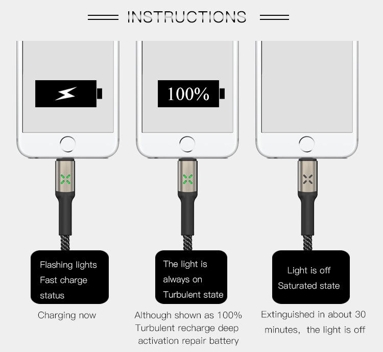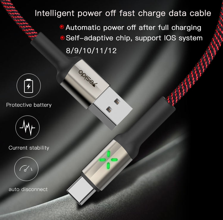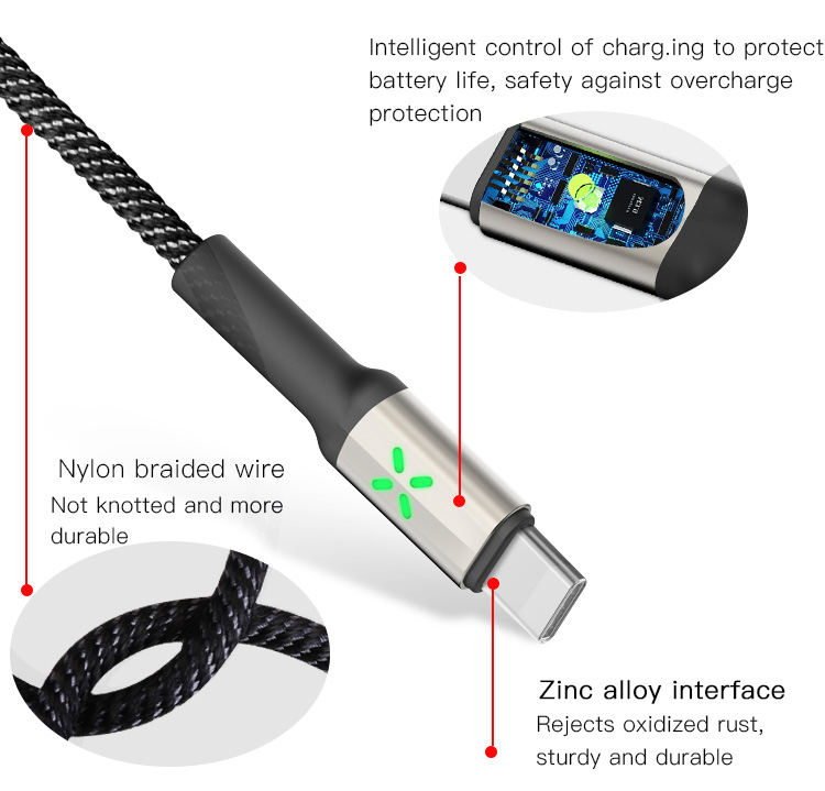 Cable de datos de Control de luz de desconexión automática, venta al por mayor, Cable Usb trenzado de nailon duradero
