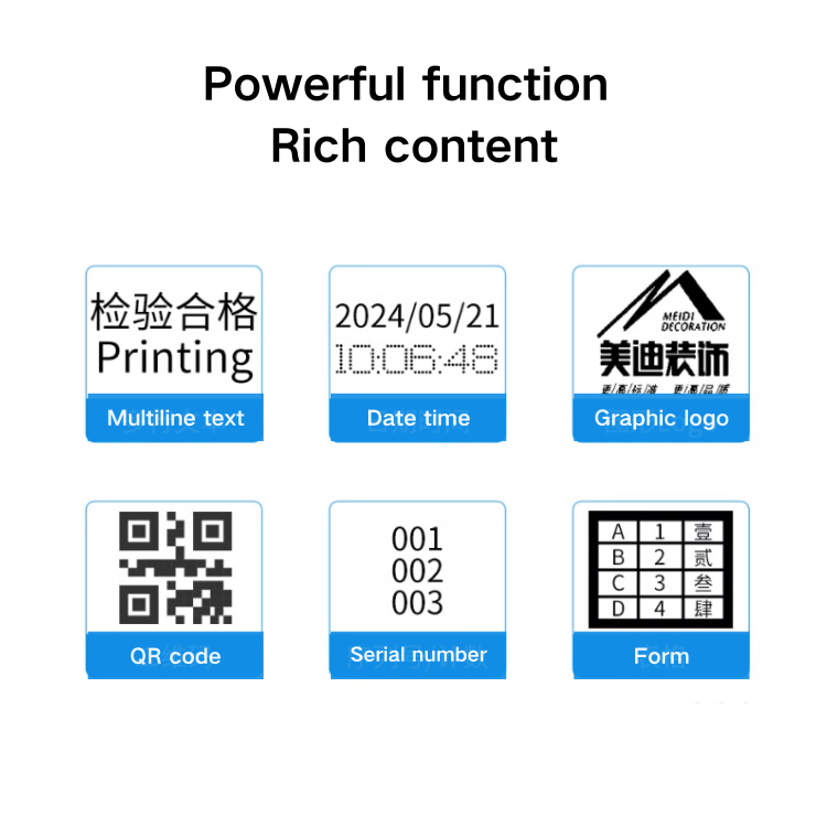 Druck inhalt:Text, zeit, zählen, barcode, qr code,logo,etc