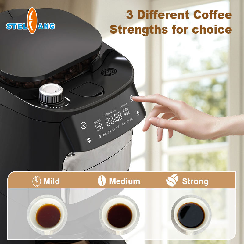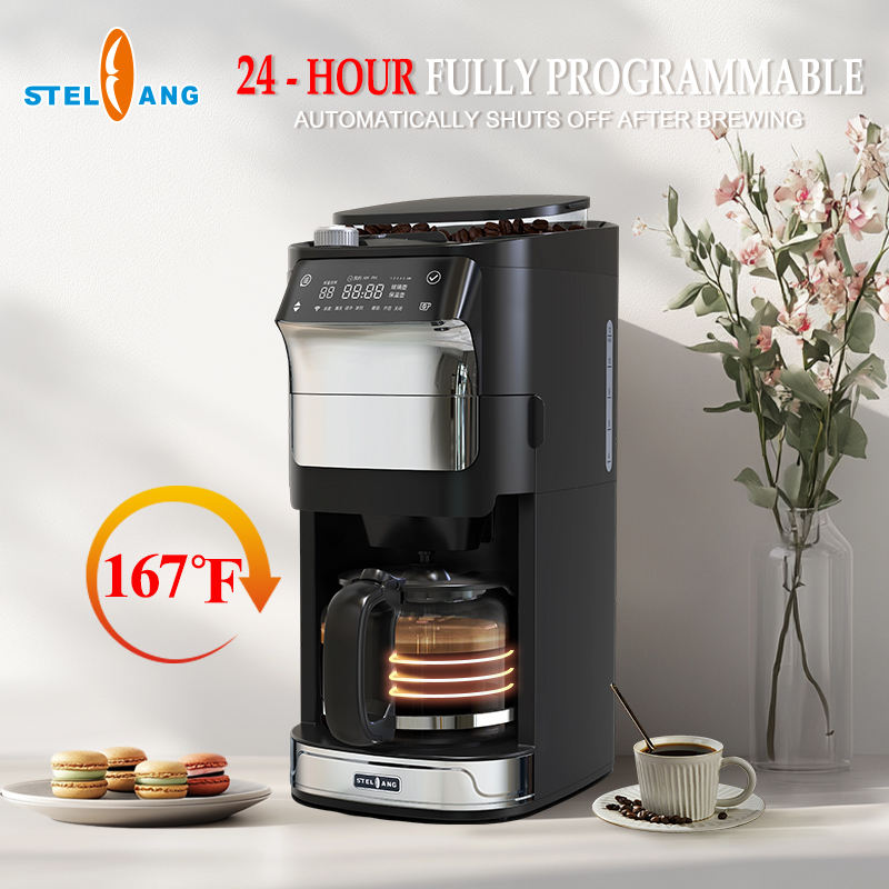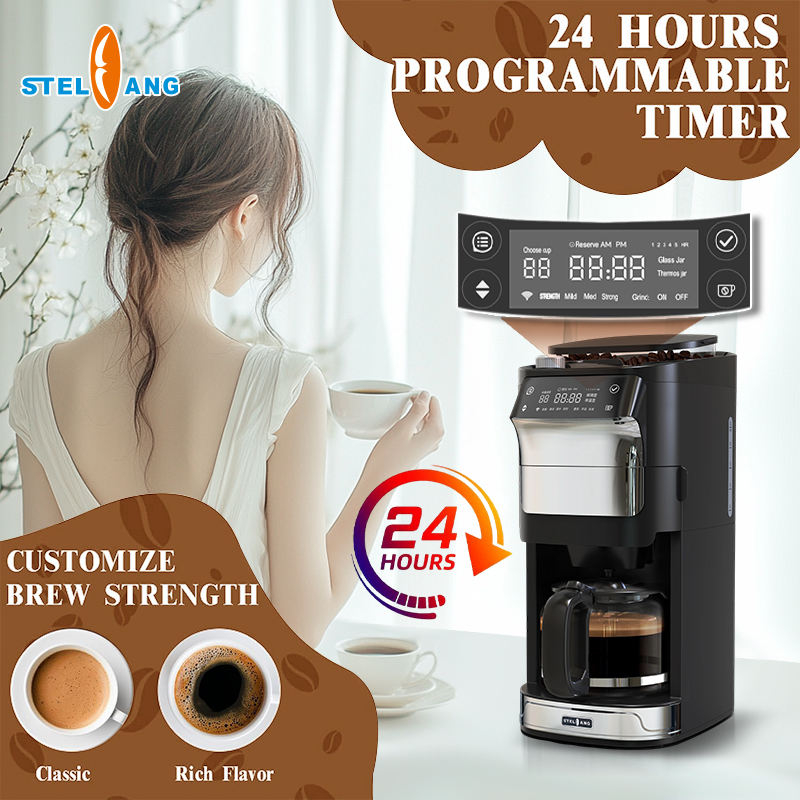 Cafetera de goteo programable automática con molinillo de granos para oficina de coche o uso doméstico-pantalla de visualización