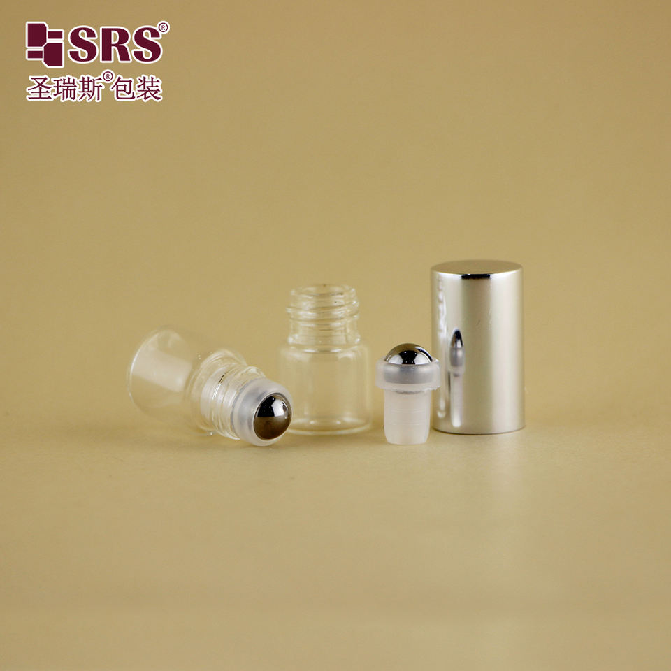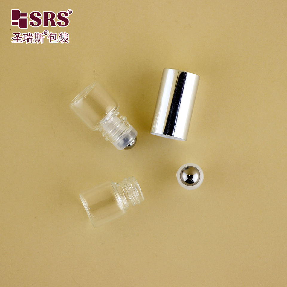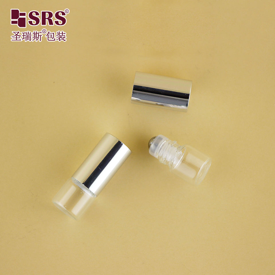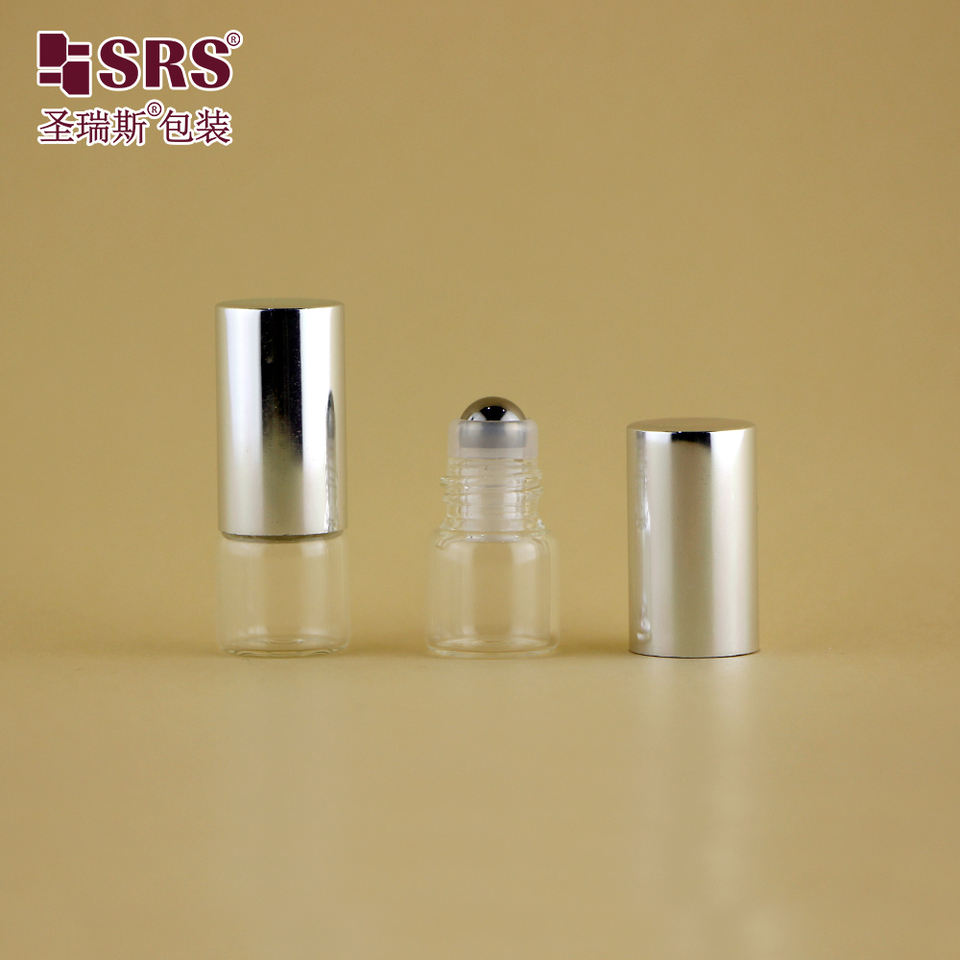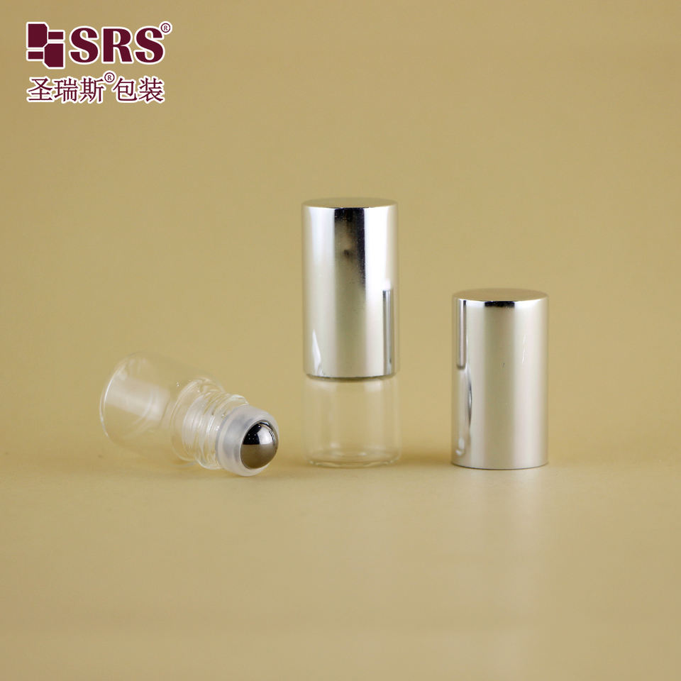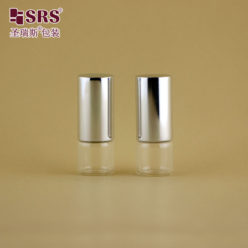 Contenedor de vial de vidrio vacío pequeño de 2ml y 3ml, a juego con rollo de Metal en inserto, tapa superior de plata de lujo para probador de Perfume