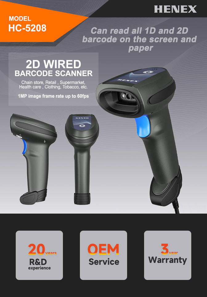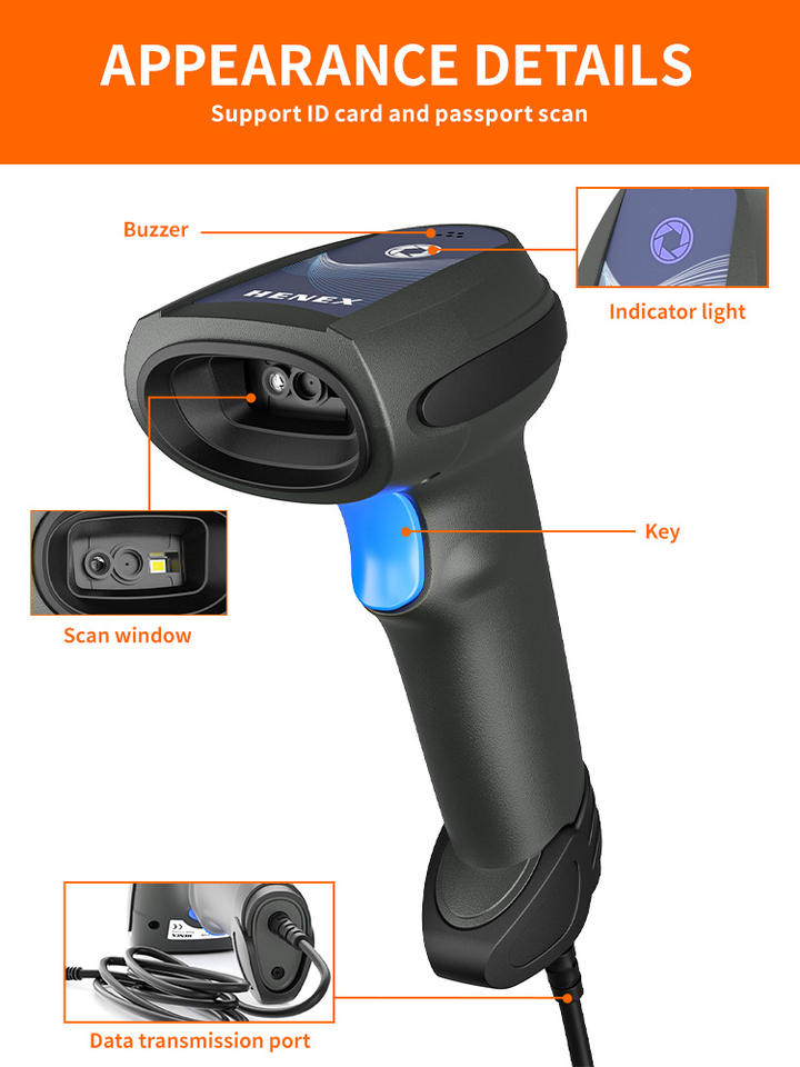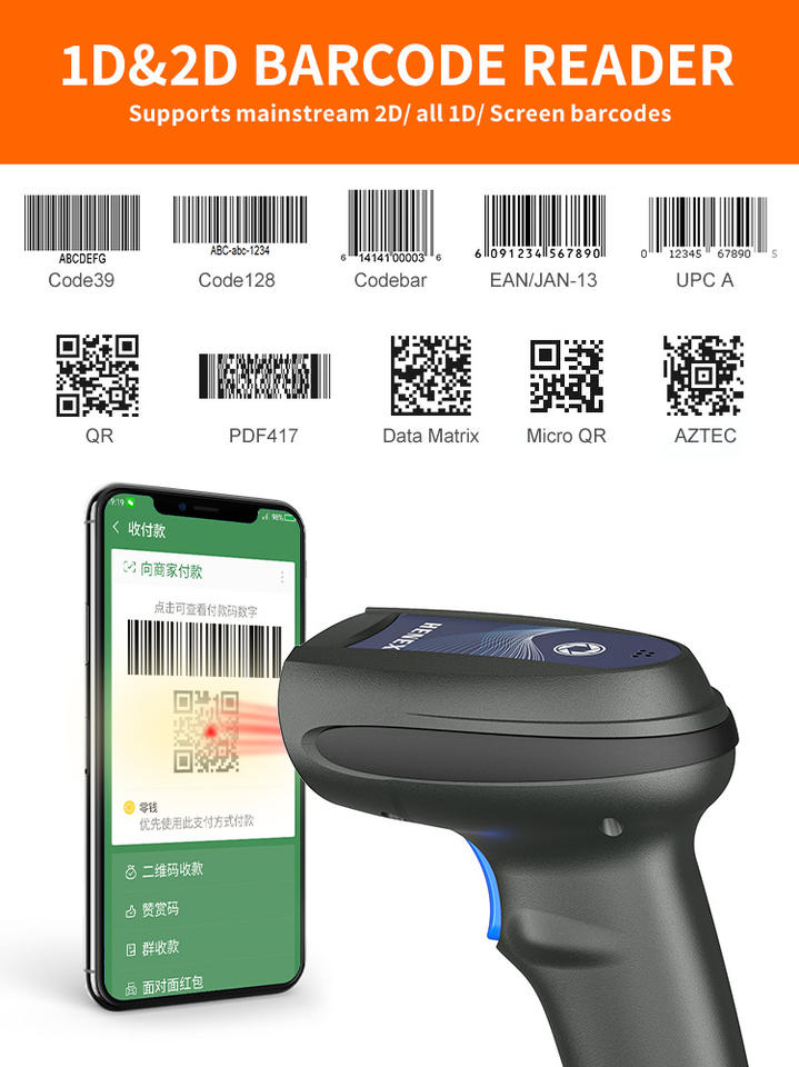 Barcode Scanner Automatische Barcode Lezer Handheld Scanner Pistool Voor Supermarkt Hoge Snelheid Scannen Bedraad 1d 2d Witte Led