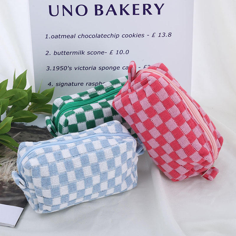 Bolsa de almacenamiento de tela con patrón de tablero de ajedrez Retro básico para lápiz, papelería de viaje, oficina, uso escolar