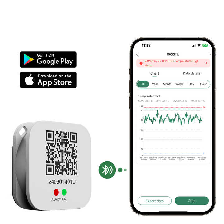 Registrador de datos de temperatura Bluetooth para almacenamiento y transporte en cadena de frío