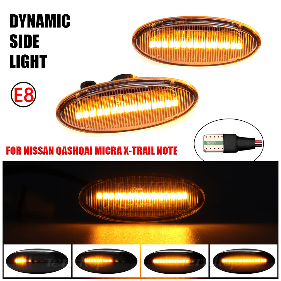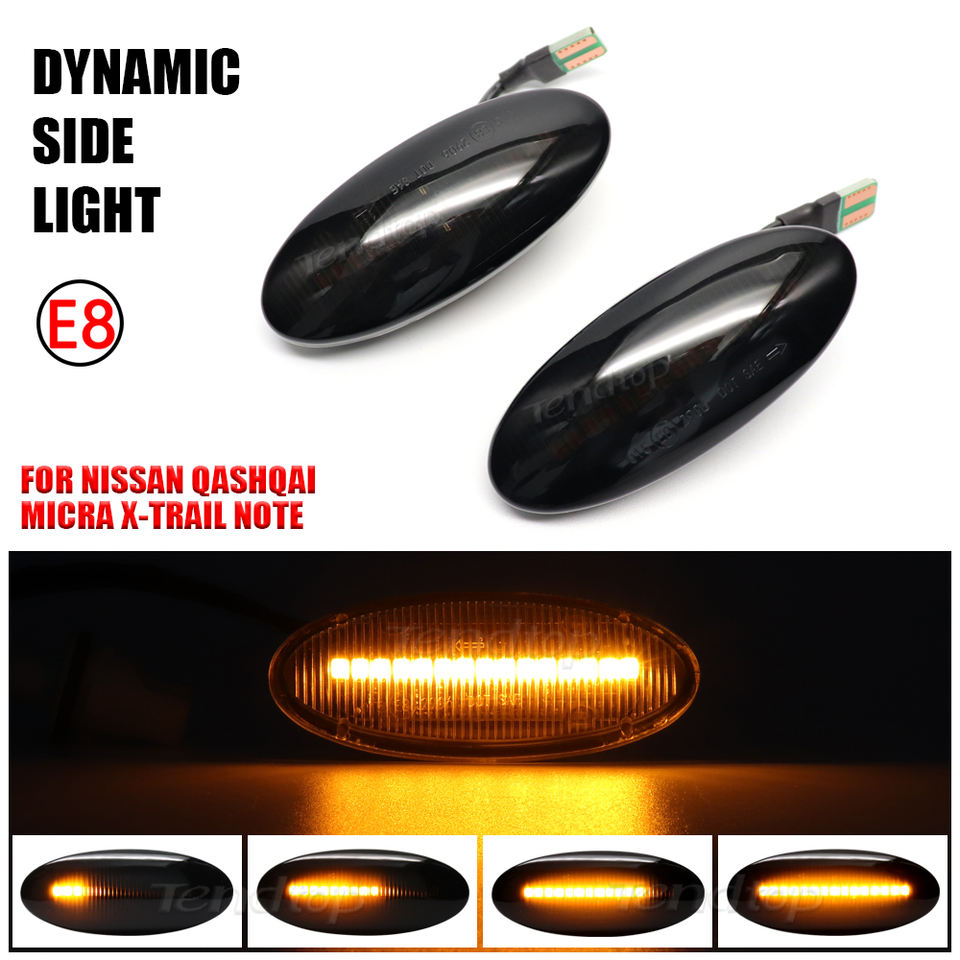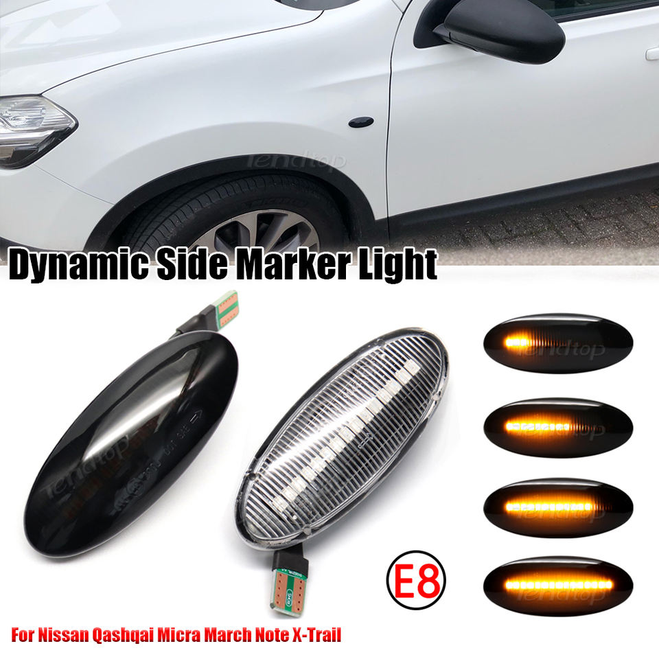 Piezas de coche, luces LED dinámicas de posición lateral para NISSAN Qashqai Dualis Juke Micra March Terrano, señal de giro, Bombilla repetidora de flujo