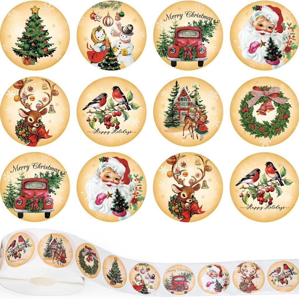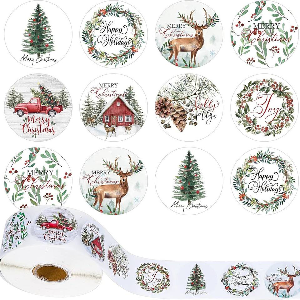 מדבקות חג המולד גלגול דפוסים כפריים שונים עבור כרטיסי xmas מעטפות תוויות מתנה