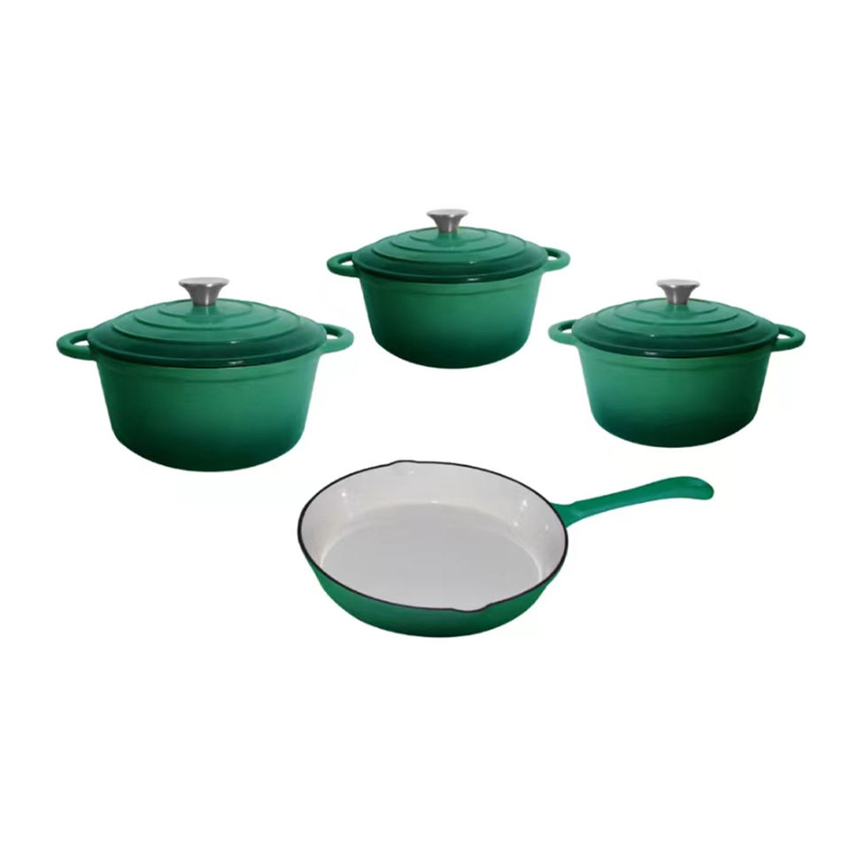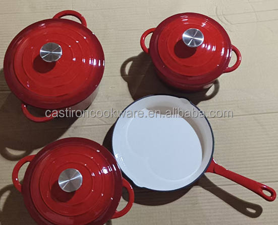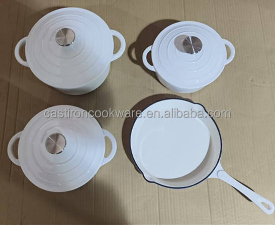 ชุดเครื่องครัวเคลือบสี4ชิ้นแฟชั่นใช้ในครัวเรือนออกแบบได้เองหม้อและกระทะเหล็กหล่อเซรามิก