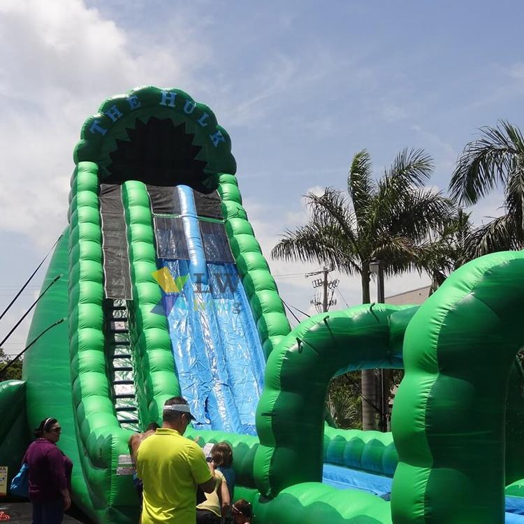 बच्चों और वयस्कों के लिए वाणिज्यिक बड़ी डबल स्लाइड और स्लिप पाम ट्री पानी इंफ्लेटेबल महल