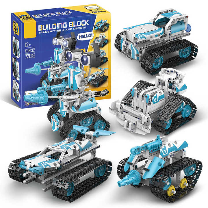 Set mainan Puzzle anak DIY, Set blok bangunan STEM Robot 5 in 1 pemrograman aplikasi kreatif