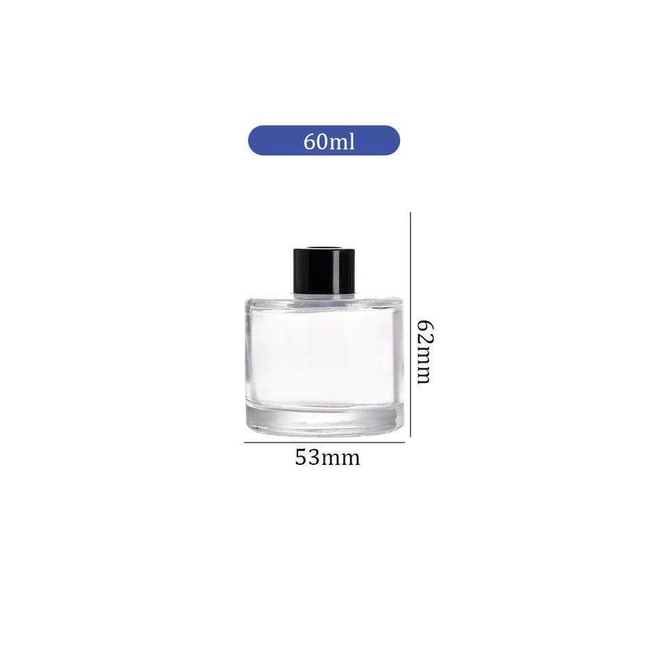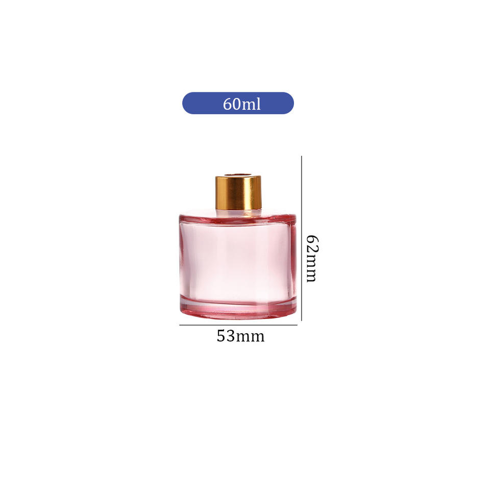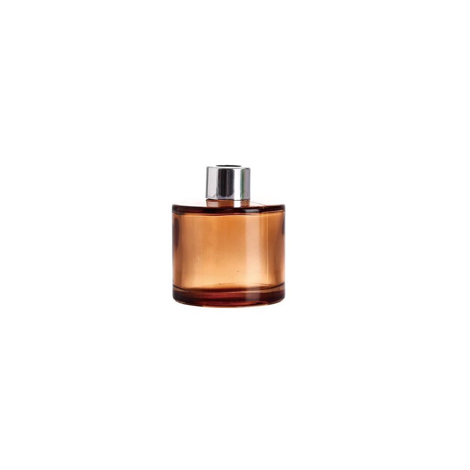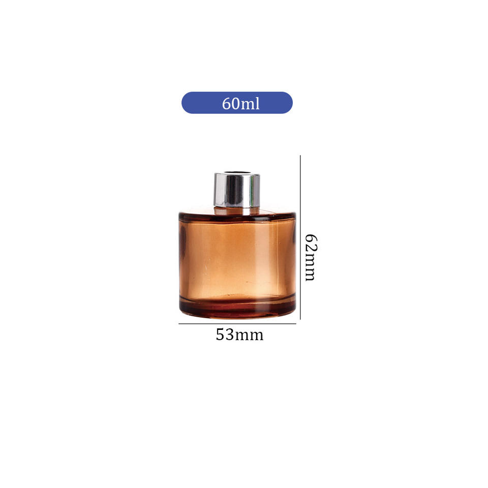 Botella difusora de vidrio para difusor de caña de ámbar personalizada para aroma, cilindro vacío de 60ml con tapón de rosca para fragancia casera